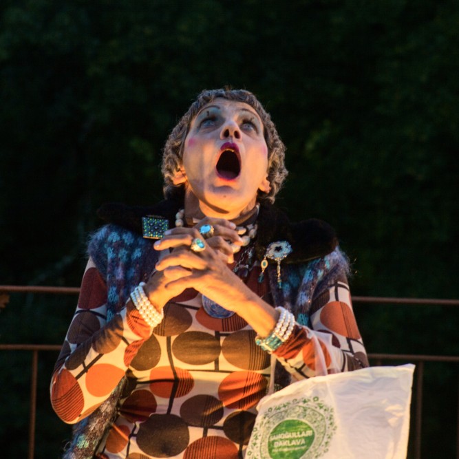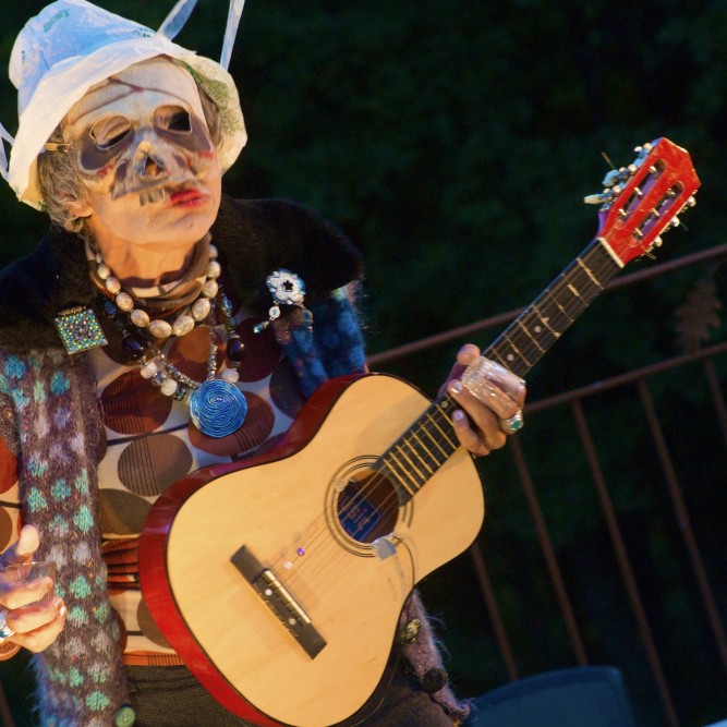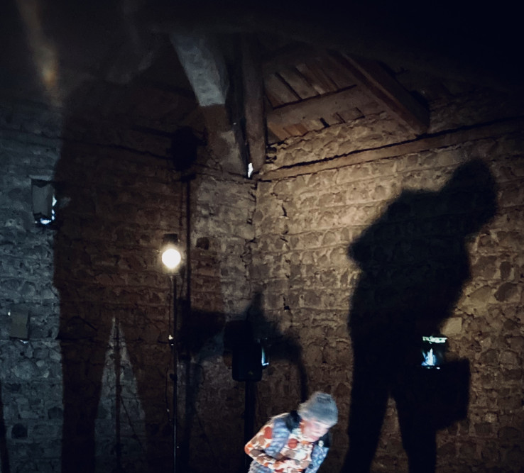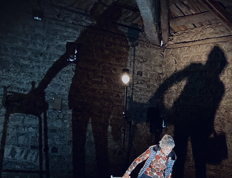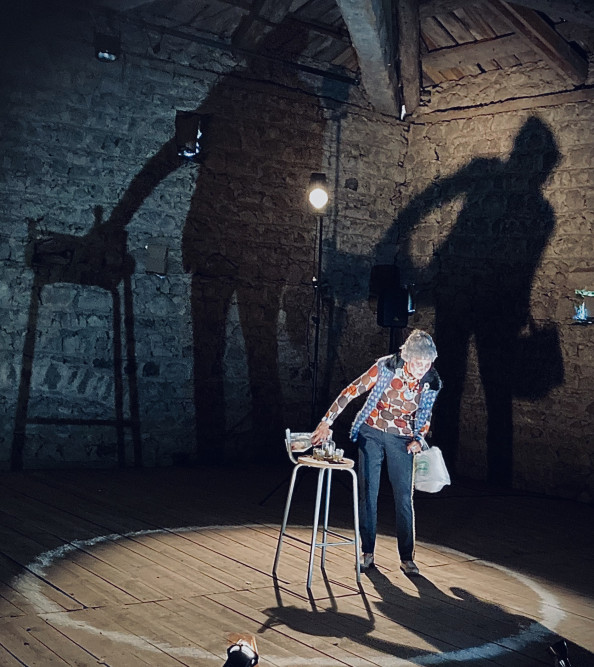 Ce qui m'a amusé en écrivant "La Vieille qui se prenait pour le Terre", c'est l'idée d'une dame pas toute jeune, pas grabataire non plus, qui aime les divagations sublimes de l'ivresse et qui parfois se prend pour la Terre. Alors elle convoque un public sur son terrain de jeu sous les étoiles, se livre à une drôle de cérémonie, dessine un cercle au sol, rentre dedans, tourne en sens unique autour d'un haut tabouret, convoque aussi ses planètes chéries, leurs sert un petit coup à boire, les boit, et rentre dans un débit de paroles cathartico-délirant, nous faisant part des réflexions chroniques de la Vieille Terre face à un virus solide, indéfectible, dangereusement contagieux .. mais certainement pas éternel .